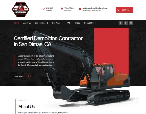 Lumberjack Demolition Co. is locally owned and operated. They are licensed, bonded and insured to provide a wide range of demolition services in the San Dimas, CA area and all surrounding cities.